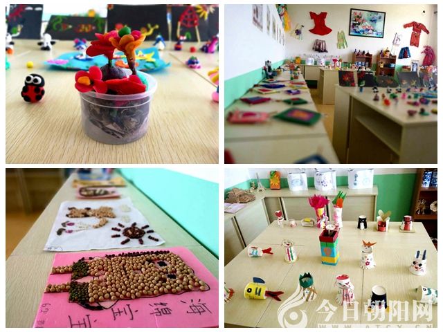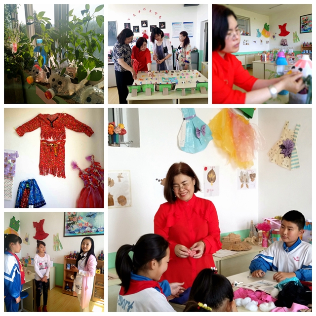 走進(jìn)我校的綜合實(shí)踐活動(dòng)教室,除了墻上排列整齊的各項(xiàng)規(guī)章制度和記錄本外,你會(huì)發(fā)現(xiàn)仿佛走進(jìn)了一場(chǎng)小型的博覽會(huì)。給蛋寶寶《設(shè)計(jì)防護(hù)服》;制作《紙杯玩具》;利用廢物《給照片穿上漂亮的外衣》;學(xué)生親手制作的《縫沙包》;精美的《我的房間我設(shè)計(jì)》構(gòu)圖方案;用黏土捏制的各種模型;用各色毛線編制的壁掛;用五彩絲線繡出的十字繡、鞋墊;五顏六色,造型別致的紙制服裝;造型各異的剪紙作品;用酒瓶、木板、奶粉罐、石頭、葫蘆繪制的各種臉譜;巧手裁衣小天使——于思涵和同學(xué)們用彩紙、廢舊布料制作的各種款式的衣服;用油桶、洗衣液桶、水桶、飲料瓶等制作的各種穿著五顏六色外衣的花盆里,土豆、洋蔥、大蒜、西紅柿等長(zhǎng)勢(shì)正旺,讓人恨不得馬上摘下來(lái)用桌上的自制炊具現(xiàn)場(chǎng)炒上一盤,好好地品嘗一下這純天然的綠色蔬菜;那一幅幅精美的葉畫,一張張記錄著學(xué)生精彩活動(dòng)的珍貴照片……無(wú)不告訴你這一切的作者都是美的發(fā)現(xiàn)者、欣賞者、創(chuàng)造者。