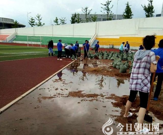 7月6日晚間,朝陽突降罕見大雨,給交通以及公共設施造成了很大損失。朝陽師專體育場地下水井反水,大半個場地被糞便污染。為了不影響使用,雨剛停,師專物業(yè)經理即組織全體物業(yè)人員,用水泥袋裝沙子做防水堤,大家挽起褲腿,顧不得腳下的糞便水,一心想著為學生們保護好體育場。