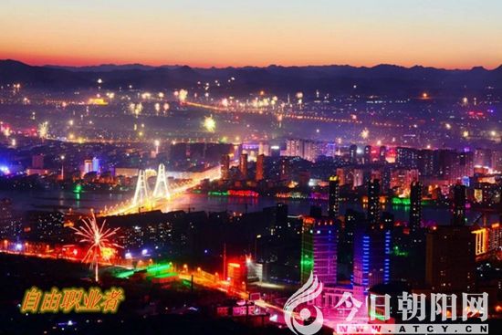 登高俯瞰朝陽夜,姹紫嫣紅耀古城。