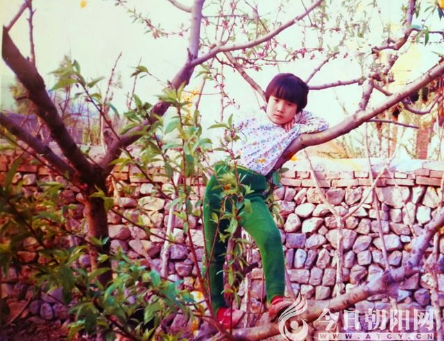 女兒小時(shí)在母親院內(nèi)桃樹(shù)上玩耍