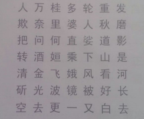 館長詭秘一笑,說:“白菜下面有若干文字,寫在縱七橫七的格子中,但我只能顯露一部分,你能補全,瓷盤歸你,否則休想拿走。”說著,移掉白菜,迅速地用兩塊膠布糊上了大部分文字,只露出七個字: