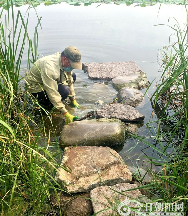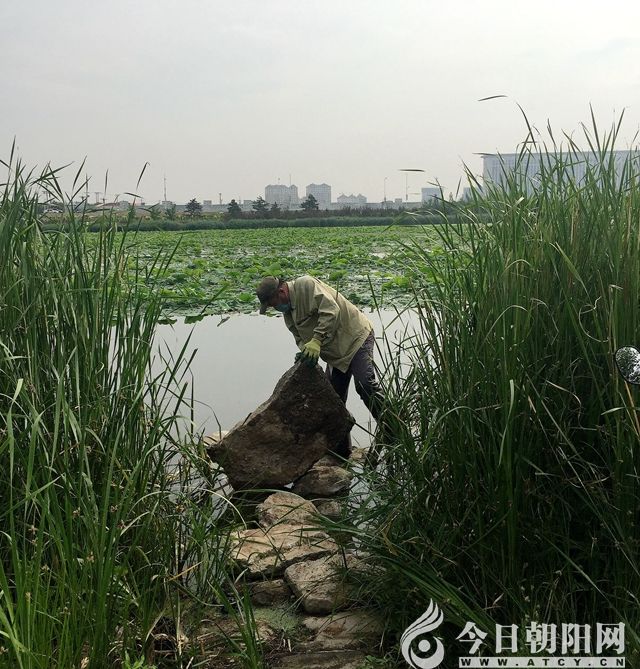 看著他在水中足足浸泡了一個(gè)多小時(shí),此時(shí)鞋和褲子全都濕透了,水沿著褲管往下流,就連手上戴的膠皮手套也磨破好幾個(gè)洞,額頭的汗水滴答滴答地浸透了口罩。我突然感到那么地愧疚,自己竟然還奢望向前延伸,豈不知他在水中是多么危險(xiǎn),石頭上的綠苔和水下淤泥都很滑,他隨時(shí)都有滑入深水區(qū)的危險(xiǎn),想想都有些后怕。