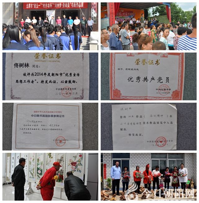 顧全大局,傳播家鄉(xiāng)文化。佟樹林從2000年起擔(dān)任北票書畫院院長兼北票文化館副館長。那時(shí),常年工作在北票書畫院的只有他一個(gè)人。600平方米的書畫院才剛剛落成,可以說是“百廢待興”,所有的后續(xù)工作都留給了他。面對一片狼藉,他下決心用自己的雙手使書畫院盡快向城鄉(xiāng)居民開放。時(shí)值隆冬,滴水成冰,起早貪晚夜以繼日,終于趕在元旦之前把書畫院打理得窗明幾凈,又加緊時(shí)間征集作品,搞了一次“迎新年美術(shù)書法攝影作品展”。不久財(cái)政撥款為書畫院安置了一個(gè)空調(diào),為了保證書畫院參觀來訪人員冬暖夏涼,心情愉快,他堅(jiān)持把空調(diào)裝在了大展廳。一干就是12年,把書畫院作為平臺積極宣傳北票,宣傳北票輝煌的文化成果。他加強(qiáng)對內(nèi)對外聯(lián)絡(luò)宣傳,多次組織海峽兩岸書畫展、企事業(yè)發(fā)展成果展、中小學(xué)生廣場書畫大賽、夕陽紅書法、城區(qū)書畫、農(nóng)民美術(shù)書畫攝影展等大型展覽,為宣傳北票、傳播先進(jìn)文化做出了積極貢獻(xiàn)。同時(shí),也為北票市被列入“中國民間藝術(shù)之鄉(xiāng)(書法)”,做出了一定貢獻(xiàn)。2005年,把北票書協(xié)、美協(xié)的辦公地點(diǎn)安置在了書畫院,密切了對內(nèi)聯(lián)系,方便開展城鄉(xiāng)文化活動。在開展工作的同時(shí),不忘宣傳工作,將每次活動都寫成通訊報(bào)道,及時(shí)宣傳出去,使更多的人了解了北票,了解了北票的文化。在大家的共同努力下,書畫院工作開展得有聲有色,受到了上級領(lǐng)導(dǎo)和城鄉(xiāng)群眾的好評。