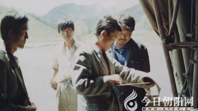 周志堅在野外用放大鏡觀看地質(zhì)標(biāo)本