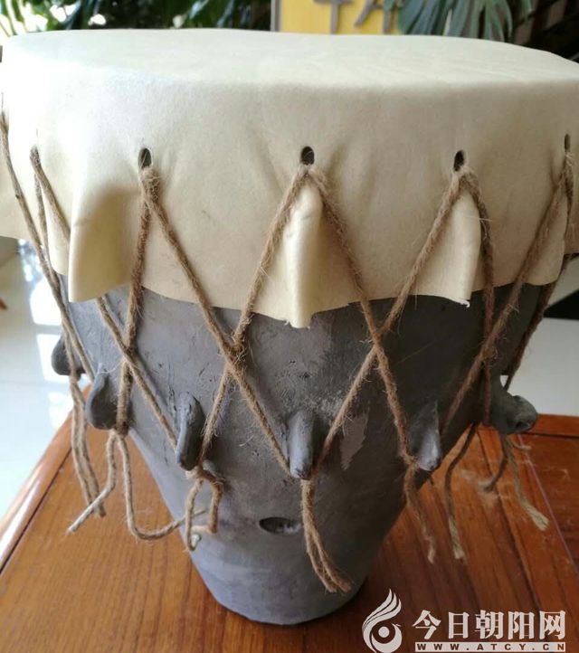 據(jù)考證,德輔博物館收藏的這個(gè)寶貝,屬于著名的“趙寶溝文化時(shí)期”。從現(xiàn)有資料來(lái)看,應(yīng)該是迄今為止人類發(fā)現(xiàn)最早的陶鼓。據(jù)王冬力介紹,陶鼓的復(fù)原采用泥條盤筑的方法塑造陶坯,窯室溫度達(dá)到1100℃,燒制9個(gè)小時(shí),終于在十多個(gè)陶坯中燒制成功3件陶鼓復(fù)制品。鼓面選用結(jié)實(shí)的水牛皮制作。在制作鼓面前,先將牛皮在水里浸泡,直到牛皮變軟。把牛皮處理得當(dāng)后,裁出直徑稍大于鼓面的圓形,以陶鼓口沿下的固定孔為標(biāo)志,各邊角穿孔、系上麻繩,然后蒙上鼓身,置于臺(tái)前,將牛皮上的各條麻繩向下固定于“革丁”之上,并在此前調(diào)整麻繩,助力牛皮拉抻,直到輕敲鼓面,傳出來(lái)的聲音洪亮、勻稱并悠遠(yuǎn),再放到通風(fēng)的地方陰干。這樣,一個(gè)曾由遠(yuǎn)古先民制作并使用的陶鼓,在遼西朝陽(yáng)再次“復(fù)活”,重現(xiàn)了古靈精怪的昔日風(fēng)采與別具一格的洪荒之音。