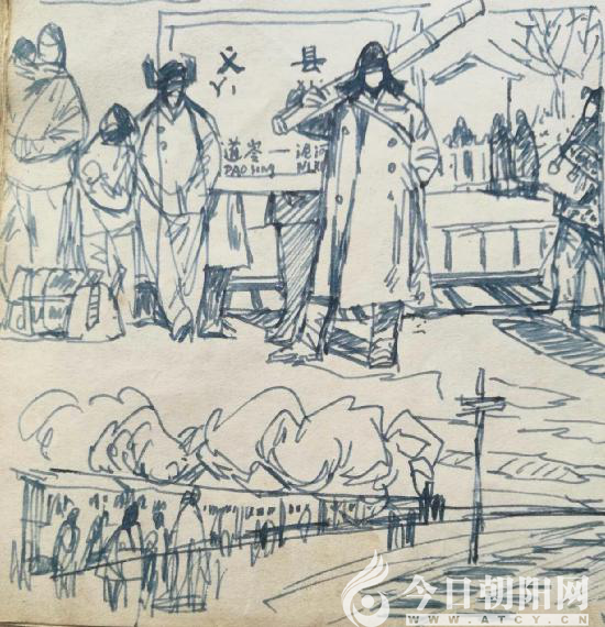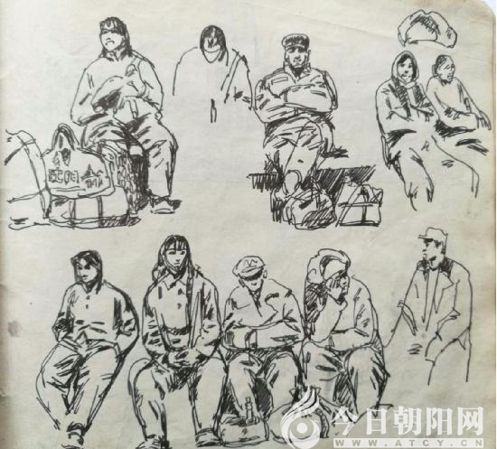 岸上的人們?cè)谲嚿峡吹剿倪z物:一個(gè)四角已經(jīng)磨破的草綠色八開畫夾,打開畫夾,一張張精彩的、生動(dòng)的速寫、素描人像,呼之欲出。行囊里有他換洗的襯衣,工作證上寫著“文道寬”“朝陽地區(qū)群眾藝術(shù)館”的字樣。