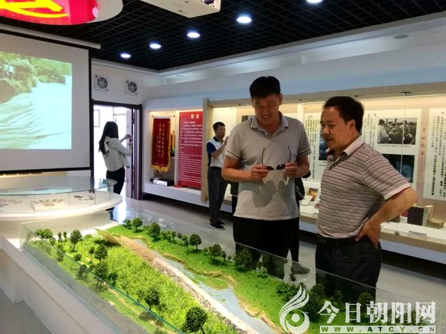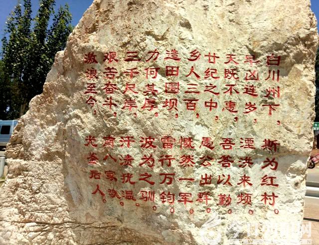 很快,一行人又來到“紅村激浪紀(jì)念館”。相較于很多高大上的紀(jì)念館,該館有點“袖珍”。一進(jìn)門,先看到“朝陽市歸國華僑聯(lián)合會”于2016年8月3日贈送給王文志老勞模的錦旗,上書“治山治水英雄風(fēng)骨,其德其行澤被后人”??催^紀(jì)念館《前言》,方知該館是為了紀(jì)念上個世紀(jì)六十年代紅村黨支部書記王文志率領(lǐng)村民攔河修壩、重現(xiàn)“紅旗渠”精神而修建的。當(dāng)年的一些生產(chǎn)生活用具、珍貴照片,以及幾位本土作家、詩人的著作,一并擺在櫥窗里,再加上《紅村銘》、“紅村激浪”圖畫的渲染,抓心、走心、化心、暖心的功能迅速顯現(xiàn)。