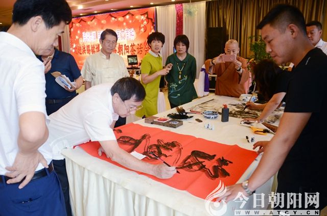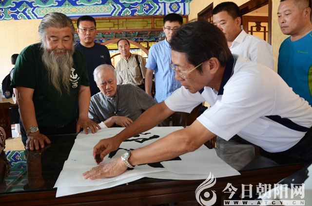 在朝期間,隨團來朝的臺灣文化藝術(shù)界學(xué)者和專家還與朝陽市文化、藝術(shù)學(xué)者進行了學(xué)術(shù)交流,并進行了現(xiàn)場筆會,一展兩岸書畫家造詣。此外,還就提升當(dāng)?shù)鼐皡^(qū)文化等事宜達成了某些共識。