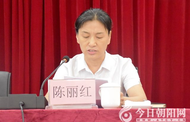 朝陽(yáng)銀行監(jiān)事長(zhǎng)陳麗紅宣讀“百日營(yíng)銷(xiāo)會(huì)戰(zhàn)”表彰決定