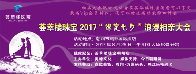 2017年遼寧省朝陽市超大規(guī)模的特色相親大會(huì)——薈萃樓珠寶2017“緣定七夕”浪漫相親大會(huì)火爆報(bào)名中!