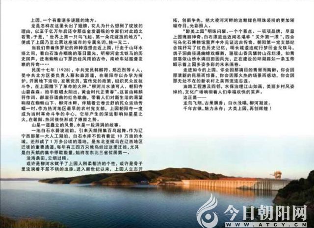 上園,古稱黔州。距北票市區(qū)35公里,東南與阜新、錦州相鄰,西北與朝陽、奈曼接壤,錦承鐵路貫穿全境,距長深高速、京沈高鐵15公里,是遼西文化名鎮(zhèn)、經(jīng)濟(jì)重鎮(zhèn)。這里人杰地靈,風(fēng)光秀美,白石水碧波蕩漾天鵝翔集,柳河川靜水深流美景如畫,朝陽寺晨鐘暮鼓梵音裊裊,四合屯龍鳴花語蜚聲世界。