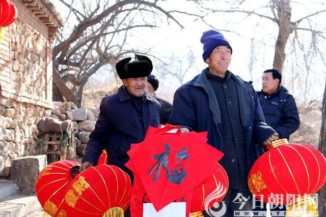 2017年1月14日,遼西朝陽,依然是一個晴空萬里的好天兒。上午,由朝陽市文聯志愿者服務隊、朝陽市民俗攝影家學會、朝陽縣書法家協會、朝陽縣正能量老干部志愿團組織的15人,興高采烈地來到朝陽縣石窯溝傳統(tǒng)村落,開展送春聯、送燈籠活動,給小山村帶來了春天的訊息。