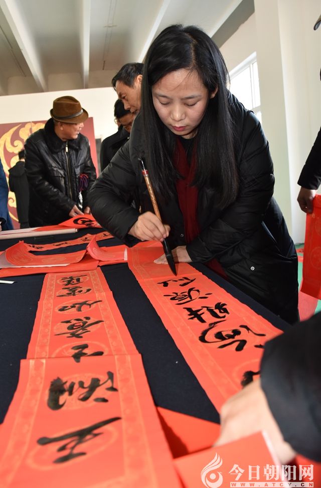 朝陽(yáng)市文聯(lián)副主席劉乃俠主持了書(shū)春活動(dòng)儀式,并代表市文聯(lián)講話(huà)。她說(shuō),舉辦這樣的活動(dòng)已經(jīng)持續(xù)十幾年了,但今年的活動(dòng)更有新意,更接地氣,更得民心,也更受歡迎?;顒?dòng)中,看到廣大民眾拿到書(shū)法家們用心書(shū)寫(xiě)的春聯(lián)、送去的祝福,臉上洋溢著喜悅,我們倍感欣慰。隨著此項(xiàng)活動(dòng)的深入開(kāi)展,不僅營(yíng)造了辭舊迎新、平安吉祥、孝老愛(ài)親的節(jié)日氛圍,更讓大家感受到了濃濃的年味兒。