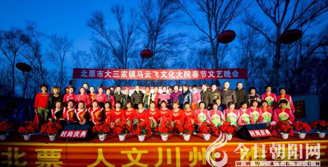 2017年2月3日,丁酉年正月初七。立春伊始,陽光明媚,春意初顯。遼寧省北票市大三家鎮(zhèn)馬云飛文化大院上演了一臺(tái)以“歡歌飛進(jìn)農(nóng)家院”為主題的春節(jié)文藝晚會(huì),唱響了遼西川州喜迎新春第一聲。遼寧省文化廳副廳長楊世濤等領(lǐng)導(dǎo),在朝陽市、北票市有關(guān)領(lǐng)導(dǎo)陪同下,與大三家鎮(zhèn)的父老鄉(xiāng)親們一起觀看了演出。