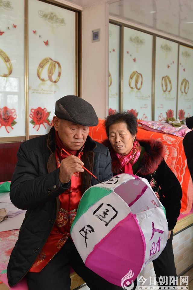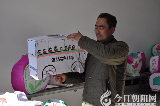 65歲的姜增閣對(duì)著盞盞花燈如數(shù)家珍地介紹起來(lái),他說(shuō),賈云清老人最開(kāi)始設(shè)計(jì)的燈種類比較單一,畫(huà)柿子的,代表事事如意;畫(huà)蘋果的,代表平平安安;還有魚(yú)燈、西瓜燈、棉花燈、富貴牡丹燈,雞(吉)燈、梅花燈等等,寓意著新的一年里蔬果、糧食大豐收,六畜興旺。為慶祝新中國(guó)的成立,1950年老人設(shè)計(jì)了五星燈,1958大躍進(jìn)那年又有了拖拉機(jī)燈,1965年村里通了班車,設(shè)計(jì)制作了班車燈,燈上還標(biāo)著“團(tuán)結(jié)—北京”,老人還設(shè)計(jì)制作了延安寶塔燈等等。