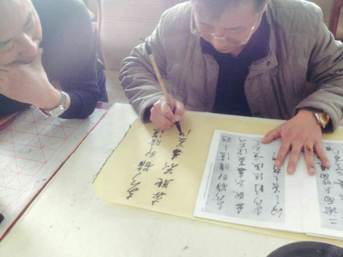 國家級會員、書協(xié)主席李智強(qiáng)不僅僅籌劃了此次活動,還率先垂范,親自臨帖、指導(dǎo),協(xié)助海生老師耐心輔導(dǎo)每個學(xué)員。