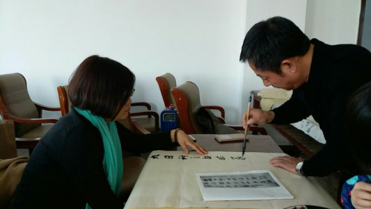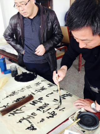 王海生老師耐心給新學(xué)員示范筆法,如何做到八面出鋒,是我們這次所有學(xué)員最大的收獲。