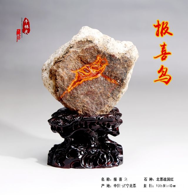 牛振武1968年出生于遼寧朝陽,從小就頑皮的他,對眼前出現(xiàn)的事物都有一種好奇心,好在心里琢磨事兒。10年前的一天,他的一位朋友想買化石送禮,他開車拉著朋友去北票市巴圖營子買石頭時,第一眼看見樹化石便感到特別新奇,當時花了2000元錢買了5塊。就是在這次偶然的接觸中,像暗夜里點燃了一盞燈,大自然的奇石讓他內(nèi)心一亮,從此對觀賞石的喜愛一發(fā)而不可收,很快被色彩斑斕的奇石迷住了。經(jīng)過多年的玩藏,讓牛振武深深地領(lǐng)悟到,觀賞石本身蘊藏的文化含量是其他文化藝術(shù)品所難以比對的,其內(nèi)含很深,沒有一定文化涵養(yǎng)的人難以融合其中。于是,他廣泛搜集有關(guān)資料,參加各種觀賞石活動,投靠名師,使他對觀賞石的鑒評和評估水平很快提高,成為觀賞石藝術(shù)界的名家。特別是近年來戰(zhàn)國紅的出現(xiàn),使牛振武在賞石界為之一震,隨著戰(zhàn)國紅在市場上的紅火,他也紅了起來。在觀賞石界提起牛振武,人們都會對他的經(jīng)歷和能力娓娓道來。
