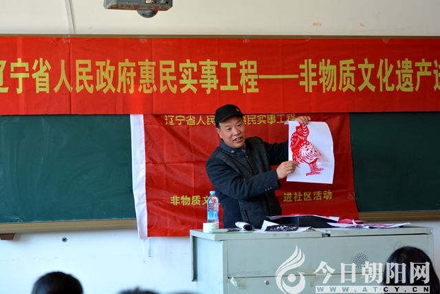 為落實(shí)遼寧省人民政府惠民實(shí)事工程——非物質(zhì)文化遺產(chǎn)進(jìn)社區(qū)、進(jìn)校園,4月27日上午,朝陽縣非遺保護(hù)中心同朝陽三中教育聯(lián)盟六中小校區(qū)七年八班聯(lián)合舉辦了一次剪紙進(jìn)校園活動(dòng)。朝陽縣剪紙代表性傳承人王宗文為七年八班51名學(xué)生傳授了剪紙技藝。