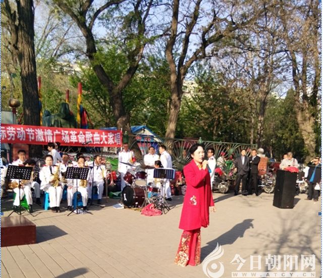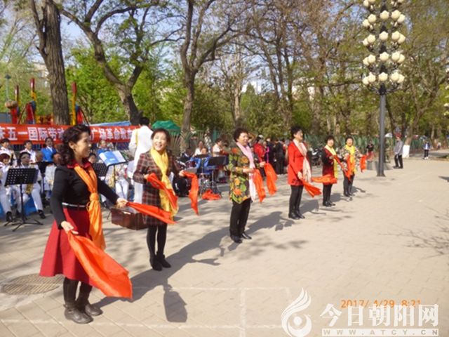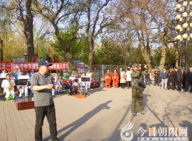 4月29日上午,遼寧省朝陽市人民公園惠風(fēng)和暢,瑞彩千條。朝陽公園合唱團(tuán)與大凌河藝術(shù)團(tuán)聯(lián)手在這里舉辦了一場(chǎng)以“五一勞動(dòng)節(jié)激情廣場(chǎng)革命歌曲大家唱”為主題的歌友聯(lián)歡會(huì)。