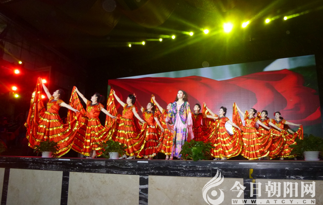 演出現(xiàn)場(chǎng),朝陽(yáng)人民公園群藝藝術(shù)團(tuán)的曹富勇老師面對(duì)觀眾深施一禮,抬手示意樂(lè)隊(duì)開(kāi)始。合唱隊(duì)員將2015、2016年在省里獲得金獎(jiǎng)的兩首歌曲《我是一個(gè)兵》《坐上高鐵去北京》高調(diào)呈獻(xiàn)給觀眾。輪唱、說(shuō)唱形式的唱法、俊美飄逸的流線動(dòng)作,賦予了兩首歌曲靈動(dòng)而鮮活的生命。尤其是《坐上高鐵去北京》這首歌,把朝陽(yáng)即將開(kāi)通高鐵的美好,帶給你無(wú)限的祈盼與暢想;身著一襲紫色長(zhǎng)裙的段玉芝漫步在群藝舞蹈隊(duì)一片火紅熱烈的舞姿之中,深情演唱《我和我的祖國(guó)》;由李寶祥指揮編導(dǎo)的小合唱《共筑中國(guó)夢(mèng)》,這是朝陽(yáng)人民公園群藝藝術(shù)團(tuán)的經(jīng)典曲目,男女混聲、激情演唱,跟著習(xí)主席踏平坎坷去實(shí)現(xiàn)撼動(dòng)民心、震驚世界的偉大夢(mèng)想;《我的快樂(lè)就是想你》這個(gè)節(jié)目是首次組建的模特隊(duì),呈現(xiàn)了女生的古典美與男生的英俊瀟灑。首場(chǎng)演出的最后一個(gè)節(jié)目,是由何琪編導(dǎo)的歌舞表演《當(dāng)那一天來(lái)臨》。三大男高音在女兵英姿颯爽的舞蹈中,唱響解放軍戰(zhàn)士的莊重誓言。