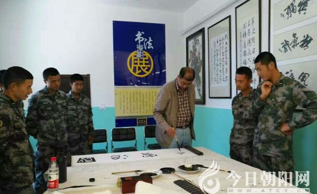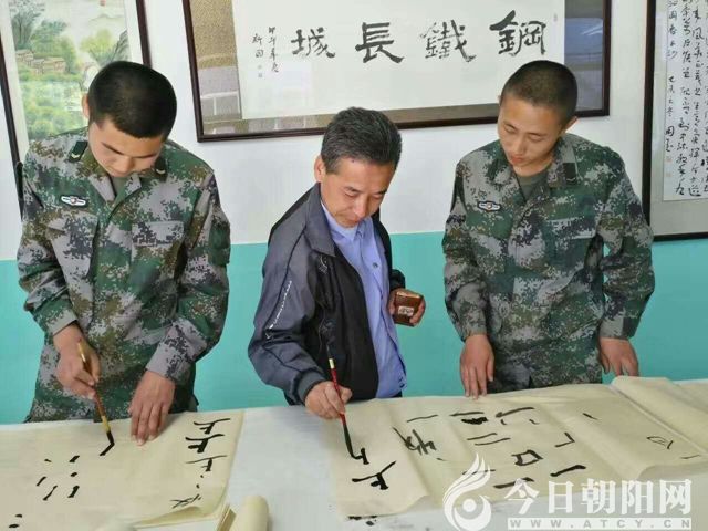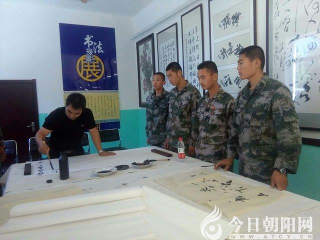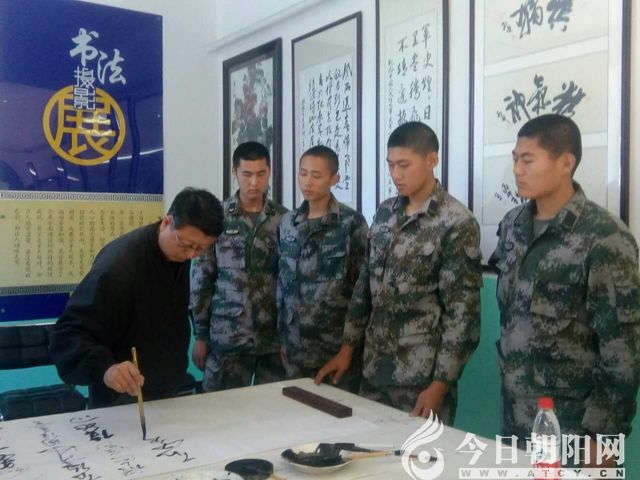 凌源市書法家協(xié)會(huì)自2014年以來,多次到這支部隊(duì)開展“送書法”活動(dòng),得到了遼寧省文聯(lián)、省書協(xié)的高度重視。2014年7月28日,省文聯(lián)、省書協(xié)授予該部隊(duì)為“遼寧省書法創(chuàng)作輔導(dǎo)基地”榮譽(yù)稱號。中國書協(xié)副主席王丹,省文聯(lián)黨組副書記、省書協(xié)主席胡崇煒共同為該部授匾,并對扎根基層默默無聞的官兵寄托了殷切希望。