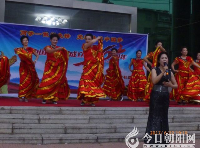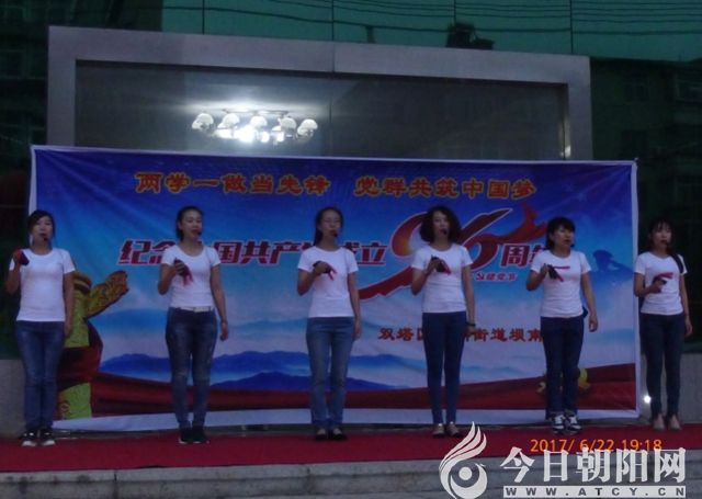 6月22日,在遼寧朝陽一建公司門前,雙塔區(qū)光明街壩南社區(qū)與人民公園群藝合唱團(tuán)共同舉辦了一場以“兩學(xué)一做當(dāng)先鋒,黨群共筑中國夢”為主題的共慶建黨96周年歌舞晚會。雙塔區(qū)、光明街、壩南社區(qū)兩委班子成員和社區(qū)居民觀看了演出。