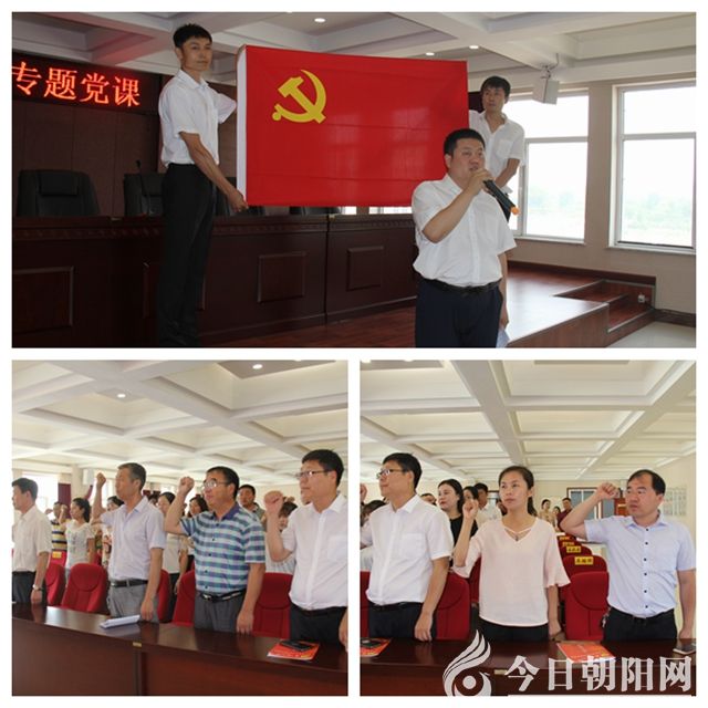 “我志愿加入中國共產黨,擁護黨的綱領,遵守黨的章程……”6月28日,中共朝陽縣委宣傳部全體黨員干部面對鮮紅的黨旗重溫入黨誓詞,錚錚誓言久久回蕩,大家用這種方式表達了為共產主義事業(yè)奮斗終身的決心。