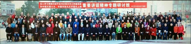 10月29日至31日,遼寧省朝陽(yáng)市文藝界“深入學(xué)習(xí)貫徹習(xí)近平總書(shū)記在文藝工作座談會(huì)和中國(guó)文聯(lián)十大、中國(guó)作協(xié)九大開(kāi)幕式上的重要講話精神”專(zhuān)題研討班在朝陽(yáng)金華園隆重舉行。省文聯(lián)副主席林建宇,省新聞廣電出版局副局長(zhǎng)朱文飆以及中共朝陽(yáng)市委宣傳部副部長(zhǎng)、講師團(tuán)團(tuán)長(zhǎng)劉利民,朝陽(yáng)市文聯(lián)黨組書(shū)記、主席王文書(shū),副主席馬連泉、劉乃俠,各縣(市)區(qū)文聯(lián)、各文藝家協(xié)會(huì)負(fù)責(zé)人,省級(jí)以上會(huì)員代表共168人參加。