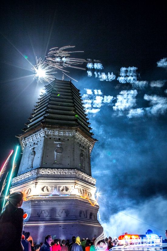 據(jù)史料記載,遼圣宗時(shí)為避水患,將建州遷至黃花灘村,并興建黃花灘塔。在塔前坡下約50米處,又建一寺院,謂塔寺合一。清乾隆三十八年的《塔子溝紀(jì)略》記載:“莊頭營(yíng)子?xùn)|去五里至黃河灘,西距塔子溝二百里,東距三座塔一百里,有古城基址,城西北山坡有古塔一座,高十七層,圍圓十二丈,塔下又小塔一座,高七層,圍圓四丈,每年五月初五、六月初六,百姓宰牛祭祠至今,永無火患。”此黃河灘應(yīng)為今黃花灘。但當(dāng)初記載的塔為十七級(jí),而且旁邊還有一座七級(jí)小塔,不知是否記載錯(cuò)誤?,F(xiàn)存的黃花灘塔在清代維修時(shí),做了很大改動(dòng),深邃的佛教內(nèi)涵、精美的磚雕圖像與宏偉壯觀的寶塔渾然一體,令人拍案叫絕。