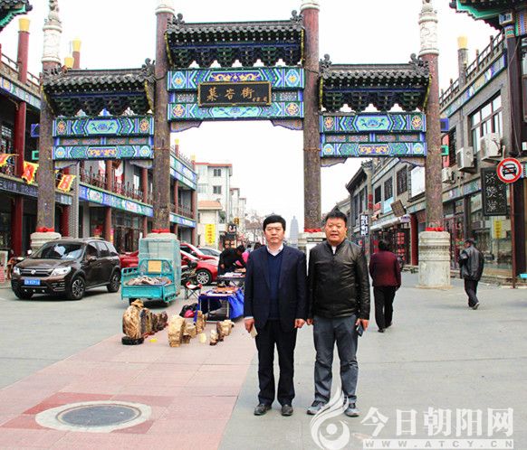 2017年3月底,慕容王族后人慕曉亮(左一)與慕明璽(左二)在朝陽(yáng)慕容街合影留念。張松/攝