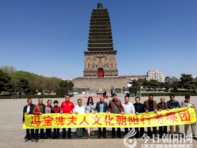 2017年4月,嶺南北燕馮氏后人回遼祭祖團(tuán)在朝陽(yáng)北塔前合影留念。 張松/攝