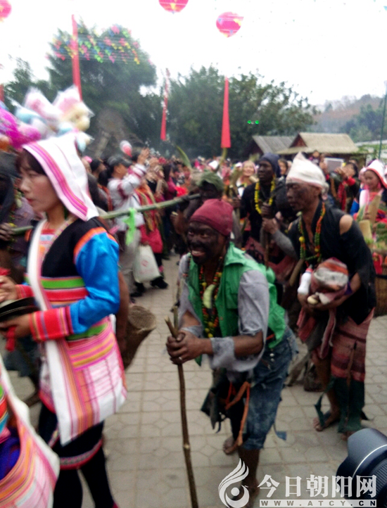 6日上午,居住在景洪市基諾山的基諾族同胞身著民族服裝、扶老攜幼涌向太陽(yáng)鼓民族文化廣場(chǎng)。七面帶有太陽(yáng)光芒的大鼓聳立在2018“特懋克節(jié)”慶典大舞臺(tái)上。偌大的嘉賓區(qū)長(zhǎng)條桌子上,為每位嘉賓用鮮竹筒盛滿本地生產(chǎn)的普洱茶水?;Z族老人用鍋底灰把臉抹黑,在臺(tái)下還原古老的生活?yuàn)蕵?lè)場(chǎng)景游行熱場(chǎng)??此麄兦昂艉髶恚瑫r(shí)而摔倒在地的搞怪表演,現(xiàn)場(chǎng)觀眾禁不住開(kāi)懷大笑。