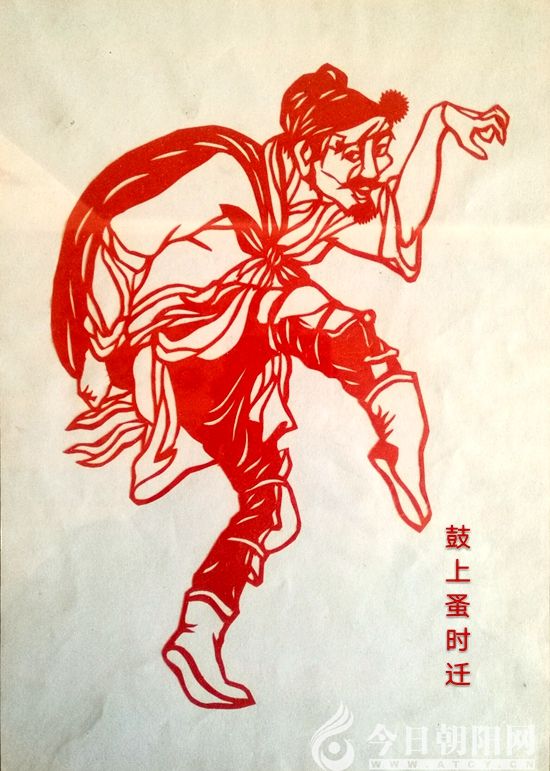還是秋初的時節(jié),我有幸加入了遼寧省朝陽市作家協(xié)會。會員證發(fā)下來的那天,朝陽縣作協(xié)主席鄭海濤老師率領七位市內較有名氣的作家來我家看我。他們知道我是農(nóng)民,自然少不了一番鼓勵。最后談到了我的剪紙,幾位老師對我的評價很高。由于以前我剪過紅樓夢中的人物,擅長詩詞寫作的趙玉國老師便同我商量,要我把《水滸傳》中梁山一百單八將剪出來(后來加上晁蓋,是一百零九將),由他配詩,二人合作出本書。我欣然答應,剪紙對我來說,也許不算什么。