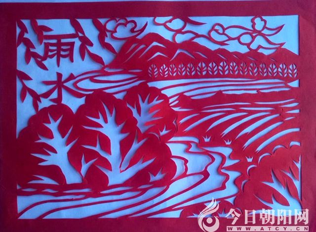 接下來,便是一刀刀,一剪剪的剪刻,其中的苦累自不必說。趙玉國老師早已把配圖的詩詞寫好,就等我的作品出爐,心里總有一種愧疚的感覺。恰在這時,縣非遺傳承保護中心布置非遺展示廳,又給了我一項新任務,要我盡快剪一套遼西二十四節(jié)氣圖。本來己經(jīng)很繁忙的我,真是感到吃不消。無奈,還是放下正剪到一半的人物,開始二十四節(jié)氣的創(chuàng)作。
