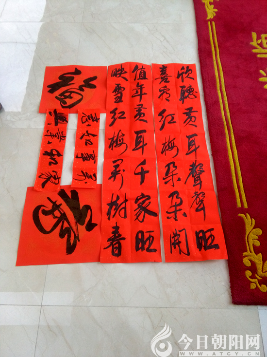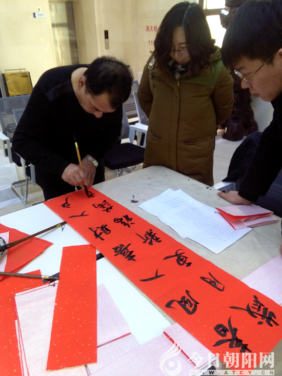 2月2日上午9時(shí),我與王中原、潘繼洲老師同去葫蘆島農(nóng)商銀行朝陽(yáng)分行,參加遼寧省朝陽(yáng)市楹聯(lián)協(xié)會(huì)組織的義務(wù)為市民書寫春聯(lián)活動(dòng)。
