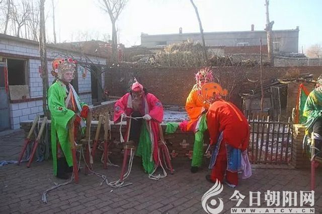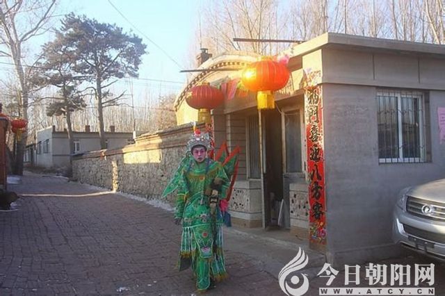 銅鑼再次響起,最后會首出場了。會首不化妝,不著妝,不踩高蹺。一身光腚棉襖棉褲,拿個小旗,站到主人面前唱幾句答謝的話: