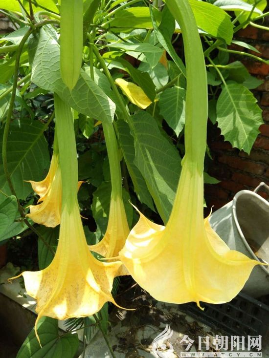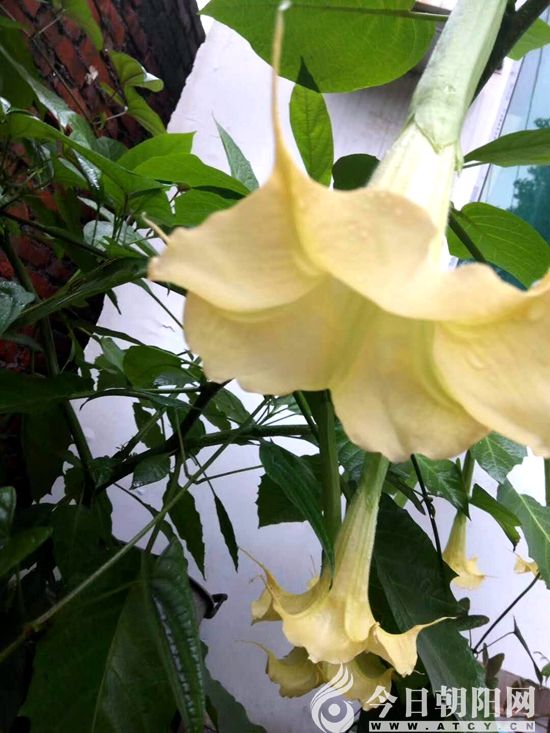 曼陀羅花型碩大,形如百合,一朵朵倒掛在枝頭。花開時(shí),飄來一股股獨(dú)特的香味。那香味不似蘭,不似玫瑰、茉莉,是一種不濃不淡,只屬于曼陀羅自己的獨(dú)有香氣。