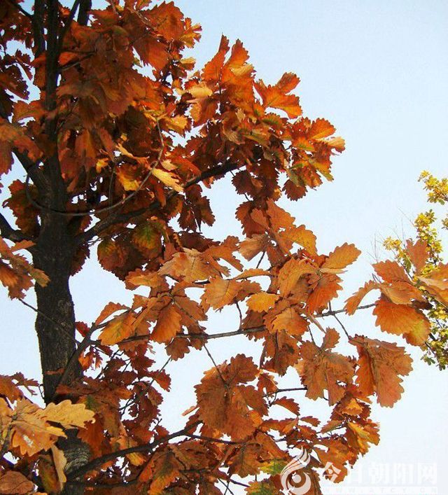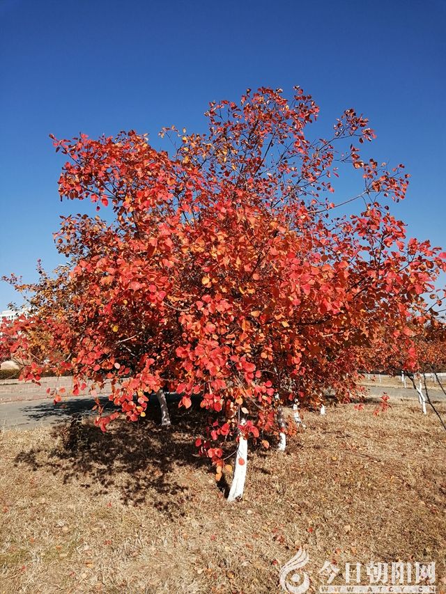 繞道東方,遠(yuǎn)望鳳凰山,似白雪茫茫。山坡的棗樹、柳樹、槐樹等還綠著,可平地的杏樹葉已黃里透紅,梨樹竟紅透了。走過(guò)春的芬芳,夏的昂揚(yáng),秋的豐碩,滿懷喜悅,心紅了臉紅著,紅彤彤地把喜悅報(bào)給人間,天人合一,人寄情于物,物勾人以情。
