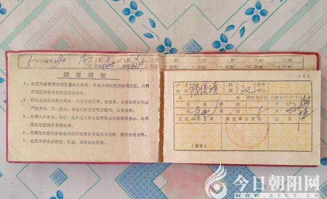 在眾多的本子中,我最喜歡看的是那本橫開的、長14cm寬10cm、紅紅亮亮塑皮的《凌源縣城鎮(zhèn)居民糧食供應(yīng)證》。輕輕地翻開內(nèi)瓤,黃底黑表格分明寫著:戶主李明(職工),妻王新蕊(職工),長女李兆艷(學(xué)生),次女李可艷(孩童)。糧食月供應(yīng)指標(biāo)數(shù)分別為15公斤,13.75公斤,11公斤,3.5公斤。細(xì)糧(大米、面粉)均為1.5公斤,其余為粗糧(玉米面、高粱米等),食油0.2市斤。時間為1992年11月。