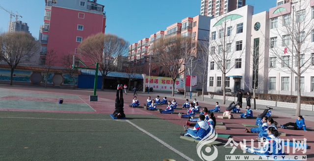 由于異地授課,老師與學(xué)生之間彼此并不熟悉,張國勝老師在課前與學(xué)生進行了10分鐘的溝通,以帥氣的外表、親和的語言贏得了學(xué)生的喜歡。北方的12月,天寒地凍,但是一點也沒有影響學(xué)生參與學(xué)習(xí)的積極性。張老師關(guān)注每一個教學(xué)細節(jié),精心設(shè)計,將本節(jié)課所需要的體育器材——小墊子擺成扇形,由教師帶領(lǐng),指導(dǎo)學(xué)生跟著跑操音樂的節(jié)奏,圍著小墊子進行蛇形跑熱身。適時的表揚鼓勵,多種形式的變換跑,調(diào)動了學(xué)生的學(xué)習(xí)興趣,學(xué)生一下就進入了學(xué)習(xí)狀態(tài)。