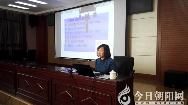 首先,龍城師??蒲胁恐魅胃袢諛纷髁恕督炭蒲?mdash;—教師成長的搖籃》專題培訓。格日樂主任運用大量案例,深入淺出地介紹了教學與科研互相促進的關系以及教研在教育教學中的體現(xiàn)。具體介紹了小課題研究的理念、特征、實施等,包括怎么選題,怎么做小課題,小課題操作中有哪些注意事項等具體環(huán)節(jié)。引領教師抓住工作中的教育教學問題,確立切實可行的課題。具有很強的指導性和實用性。