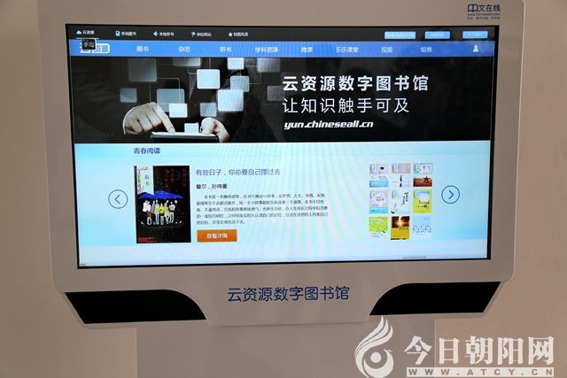 此次向朝陽市教師進修學院捐贈的云資源數(shù)字圖書館,教育資源保證實時更新,不僅可以在現(xiàn)場閱讀,還可以借助U盤和手機等電子設(shè)備下載。同時,云端設(shè)備還是展示學校風采的窗口,通過觸摸屏可以直接點擊學校網(wǎng)站、活動圖片、學校榮譽和名師風采等。