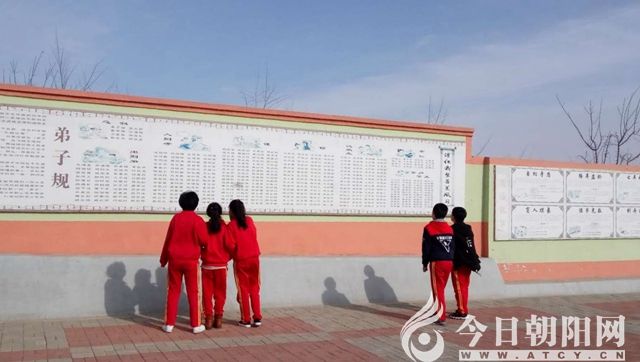 遼寧省北票市大三家鎮(zhèn)小巴里小學將《弟子規(guī)》《千字文》設計成“書香展板”,課間,孩子們經(jīng)常聚在展板前吟誦。