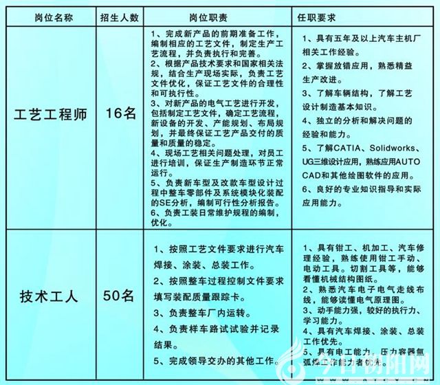 ☆身體健康,吃苦耐勞,學(xué)習(xí)能力強。具有相關(guān)工作經(jīng)驗,有汽車裝配工作經(jīng)驗者優(yōu)先。
