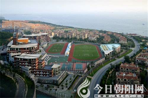 學(xué)校依山傍海而建,猶如一艘巨型戰(zhàn)艦航行于海上。五幢大樓各有體現(xiàn)鮮明特色的名字,自前而后:A區(qū)好之樓,B區(qū)樂之樓,C區(qū)中和樓,D區(qū)格物樓,E區(qū)至善樓。A、B區(qū)為小學(xué)部,C區(qū)為藝術(shù)中心,D、E區(qū)為中學(xué)部。命名非常符合中華傳統(tǒng)文化:“好之者”與“樂之者”,意在培養(yǎng)學(xué)生興趣,而“中和”之道則在于以藝修身,“格物致知”體現(xiàn)我們民族格物求真的探索精神,求知修身則自然達(dá)到至真至善至美的人才品質(zhì)。各區(qū)功能明確,但依據(jù)學(xué)生成長(zhǎng)規(guī)律相互銜接,又自成一體。校園右側(cè),是功用劃分明確的運(yùn)動(dòng)場(chǎng)和體育館,孩子們可根據(jù)自己的愛好參加體育活動(dòng)。
