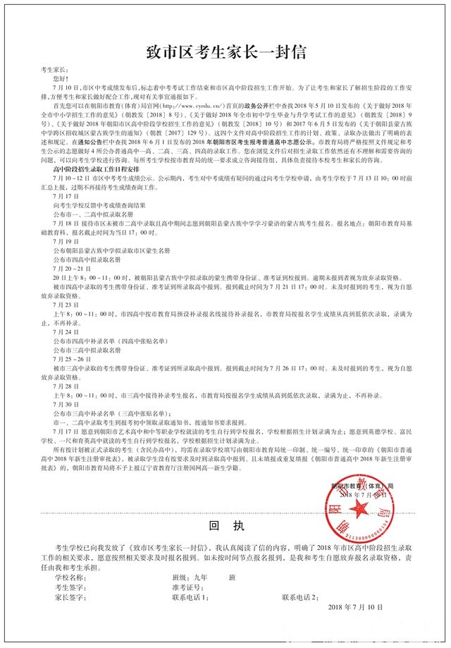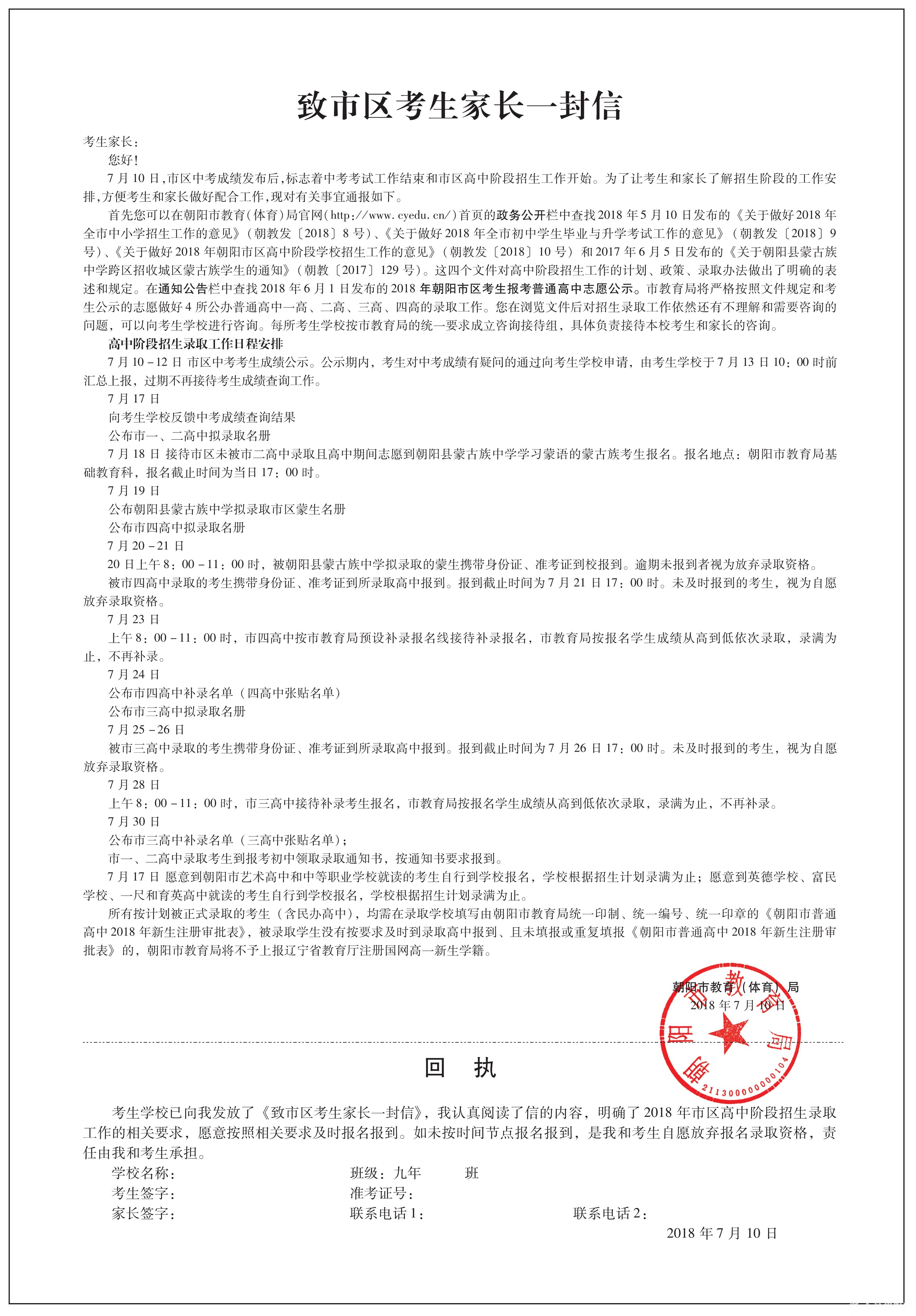 @朝陽市區(qū)考生家長:中考成績已出爐!