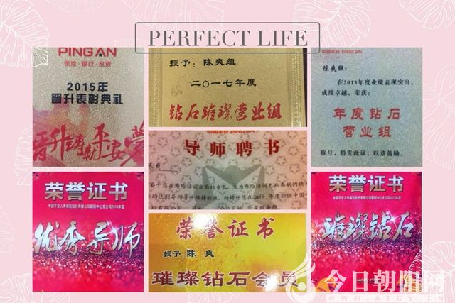 我叫陳爽,1999年8月~2002年7月就讀于遼寧省朝陽(yáng)市財(cái)經(jīng)學(xué)校,現(xiàn)就職于中國(guó)平安人壽朝陽(yáng)中心支公司任高級(jí)業(yè)務(wù)主管。在工作期間榮獲了基本法演講遼寧第一名,全國(guó)第二名的好成績(jī),是組織發(fā)展峰會(huì)高級(jí)會(huì)員,恒星鉆石俱樂(lè)部會(huì)員,高級(jí)業(yè)務(wù)主管,優(yōu)秀鉆石營(yíng)業(yè)組,年度最佳優(yōu)秀導(dǎo)師等。