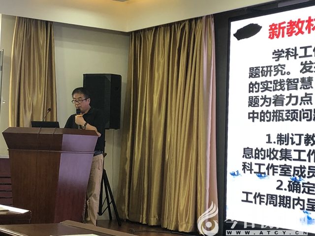 王作廷的匯報(bào)以一貫幽默的語(yǔ)言方式打開(kāi),以其豐富的研訓(xùn)工作經(jīng)驗(yàn)作基礎(chǔ),將新教材使用融入部門(mén)各項(xiàng)工作加以闡釋?zhuān)信e的一個(gè)個(gè)看似荒誕的教育現(xiàn)象的背后折射出嚴(yán)峻的教育問(wèn)題。他就初中部將組建“學(xué)科研訓(xùn)工作室”等部門(mén)工作部署做出清晰的設(shè)想說(shuō)明,促大家在一個(gè)部門(mén)的工作目標(biāo)中看到“以問(wèn)題為著眼點(diǎn)、以項(xiàng)目為著力點(diǎn)”規(guī)劃工作的重要性。