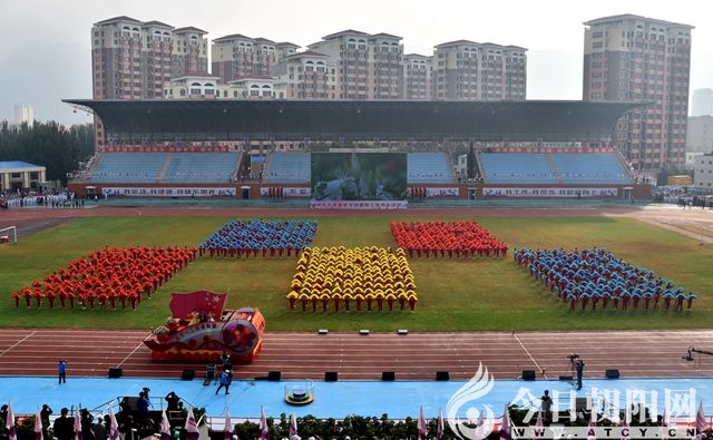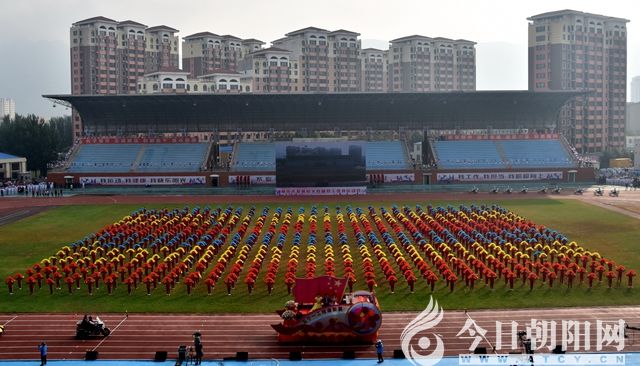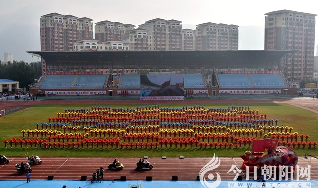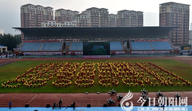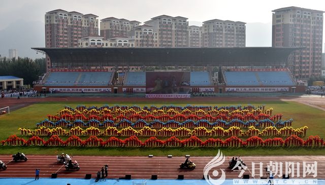 《五個一工程譜新篇》,由朝陽市財經(jīng)學(xué)校800名學(xué)生組成的表演團(tuán)隊手持花環(huán)上場,隨著隊形的不斷變換、花環(huán)的色彩變化,呈現(xiàn)出“朝陽版圖”“五個一”“笑臉”等圖案。20輛摩托車在場區(qū)外圍環(huán)繞,以動態(tài)的畫面感,向觀眾展示了朝陽七個縣(市)區(qū),七星輝映的壯美景象。